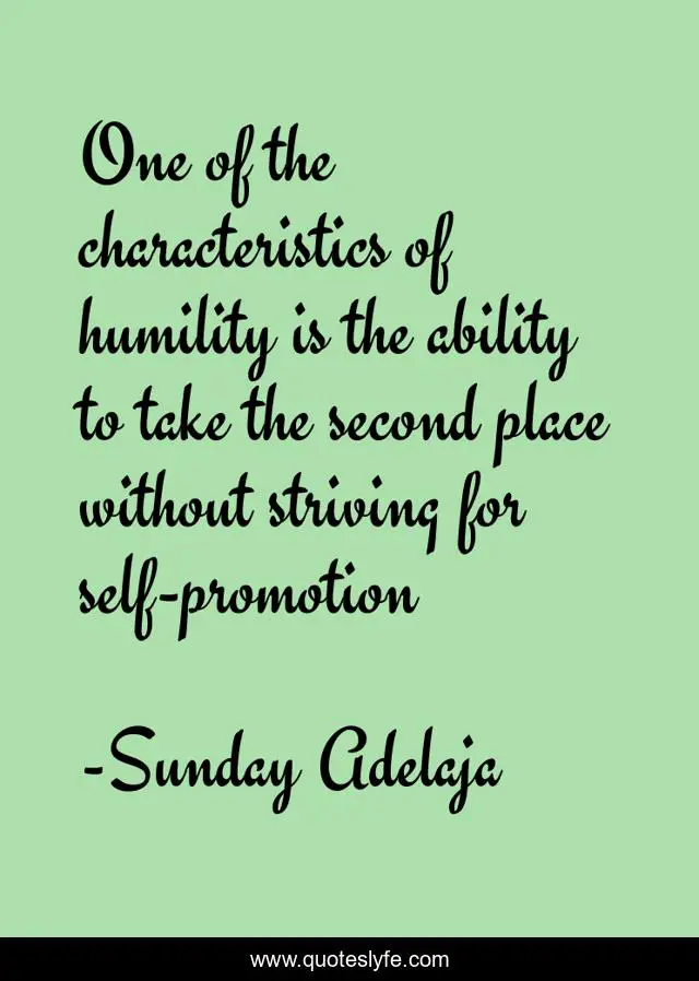 This page presents the quote "One of the characteristics of humility is the ability to take the second place without striving for self-promotion". Author of this quote is Sunday Adelaja. This quote is about ability, characteristics, self-promotion, second, humility, striving,.
