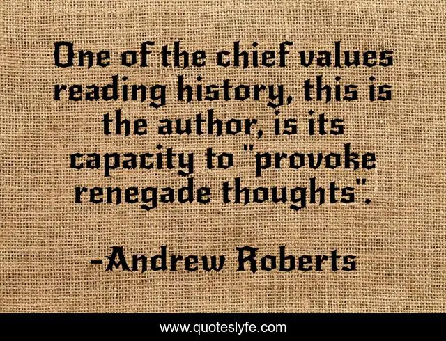 This page presents the quote "One of the chief values reading history, this is the author, is its capacity to "provoke renegade thoughts".". Author of this quote is Andrew Roberts. This quote is about history, perspective, critical-thinking,.