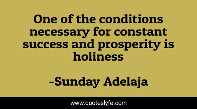 This page presents the quote "One of the conditions necessary for constant success and prosperity is holiness". Author of this quote is Sunday Adelaja. This quote is about prosperity, reality-of-life, constant, wealth, success, holiness, money, riches, truth-of-life,.