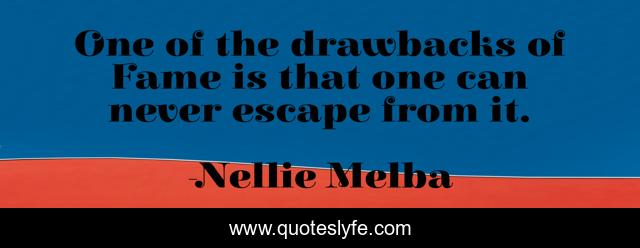 This page presents the quote "One of the drawbacks of Fame is that one can never escape from it.". Author of this quote is Nellie Melba. This quote is about celebrities, fame,.