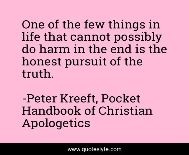 This page presents the quote "One of the few things in life that cannot possibly do harm in the end is the honest pursuit of the truth.". Author of this quote is Peter Kreeft, Pocket Handbook of Christian Apologetics. This quote is about life, honesty, truth,.