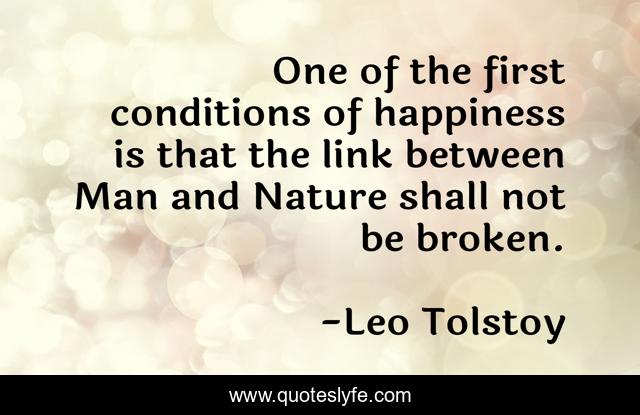This page presents the quote "One of the first conditions of happiness is that the link between Man and Nature shall not be broken.". Author of this quote is Leo Tolstoy. This quote is about broken, happiness, man,.