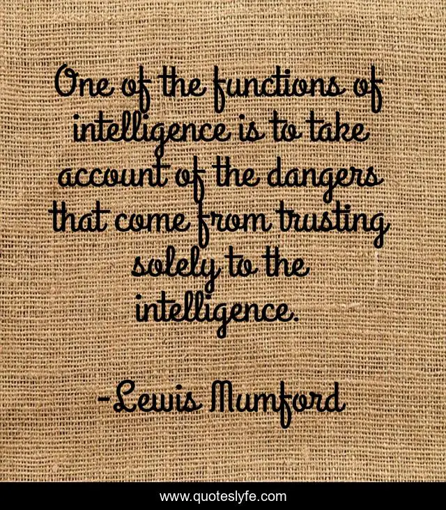 This page presents the quote "One of the functions of intelligence is to take account of the dangers that come from trusting solely to the intelligence.". Author of this quote is Lewis Mumford. .