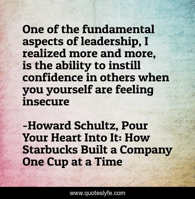 This page presents the quote "One of the fundamental aspects of leadership, I realized more and more, is the ability to instill confidence in others when you yourself are feeling insecure". Author of this quote is Howard Schultz, Pour Your Heart Into It: How Starbucks Built a Company One Cup at a Time. .