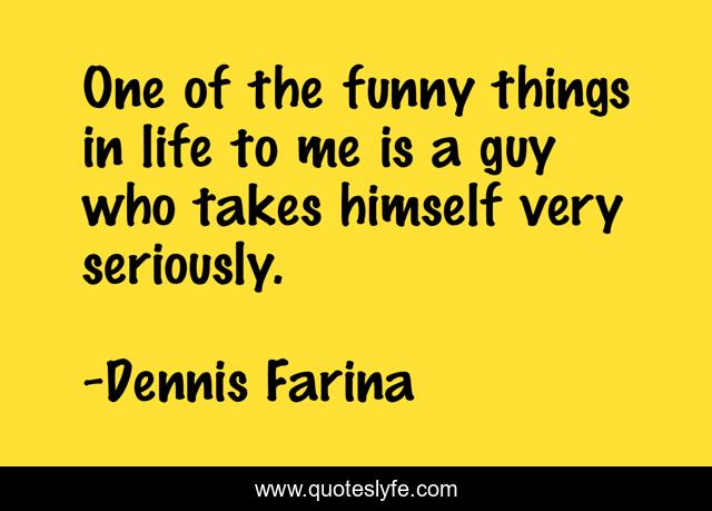 This page presents the quote "One of the funny things in life to me is a guy who takes himself very seriously.". Author of this quote is Dennis Farina. This quote is about me, life, seriously,.