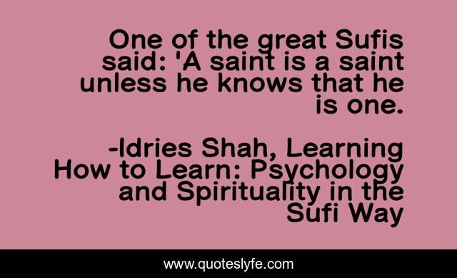 This page presents the quote "One of the great Sufis said: 'A saint is a saint unless he knows that he is one.". Author of this quote is Idries Shah, Learning How to Learn: Psychology and Spirituality in the Sufi Way. This quote is about evolution, psychology, religion, self, sufism, saint, sufis,.