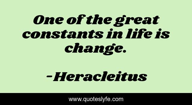 This page presents the quote "One of the great constants in life is change.". Author of this quote is Heracleitus. This quote is about paradox, change,.