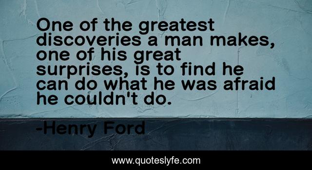 This page presents the quote "One of the greatest discoveries a man makes, one of his great surprises, is to find he can do what he was afraid he couldn't do.". Author of this quote is Henry Ford. This quote is about great, greatest, man,.