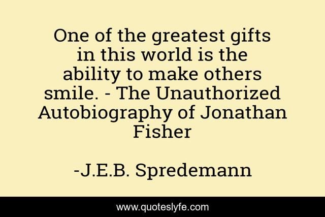 One of the greatest gifts in this world is the ability to make others smile. - The Unauthorized Autobiography of Jonathan Fisher