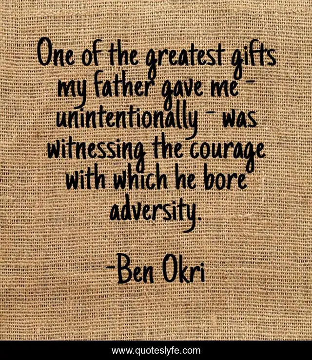 This page presents the quote "One of the greatest gifts my father gave me - unintentionally - was witnessing the courage with which he bore adversity.". Author of this quote is Ben Okri. This quote is about me, father, adversity,.