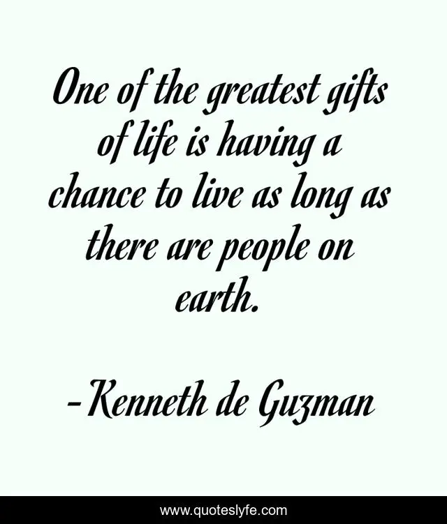 This page presents the quote "One of the greatest gifts of life is having a chance to live as long as there are people on earth.". Author of this quote is Kenneth de Guzman. This quote is about forever, chance, life, gift,.