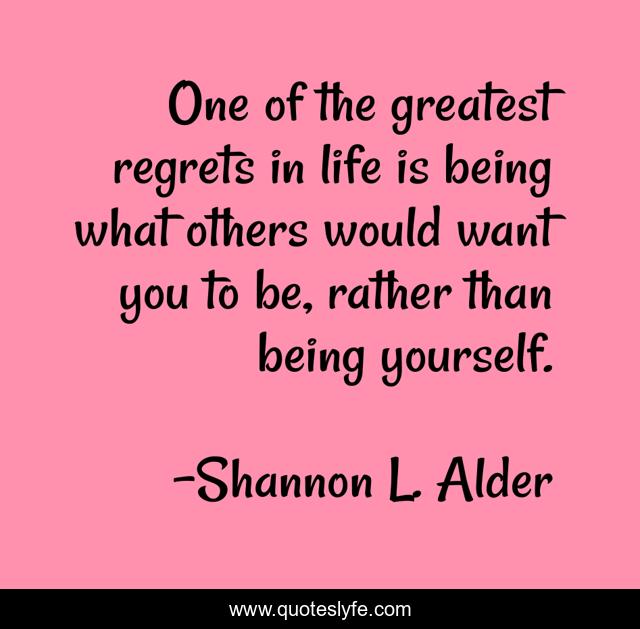 "Shannon L. Alder Quotes." Quoteslyfe.com, 2025. Mon. 08 Dec. 2025. <https://www.quoteslyfe.com/quote/One-of-the-greatest-regrets-in-life-91132>.