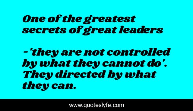 This page presents the quote "One of the greatest secrets of great leaders". Author of this quote is 'they are not controlled by what they cannot do'. They directed by what they can.. This quote is about leaders' ladder, israelmore ayivor,.
