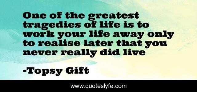 This page presents the quote "One of the greatest tragedies of life is to work your life away only to realise later that you never really did live". Author of this quote is Topsy Gift. This quote is about life, later, tragedies, live, greatest, realise, really,.