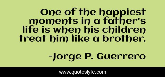 This page presents the quote "One of the happiest moments in a father's life is when his children treat him like a brother.". Author of this quote is Jorge P. Guerrero. .