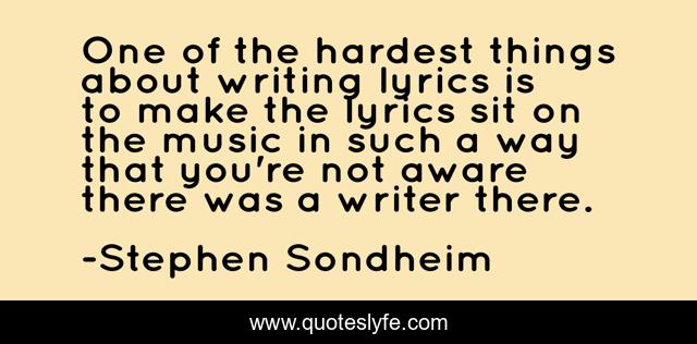This page presents the quote "One of the hardest things about writing lyrics is to make the lyrics sit on the music in such a way that you're not aware there was a writer there.". Author of this quote is Stephen Sondheim. This quote is about way, writing,.