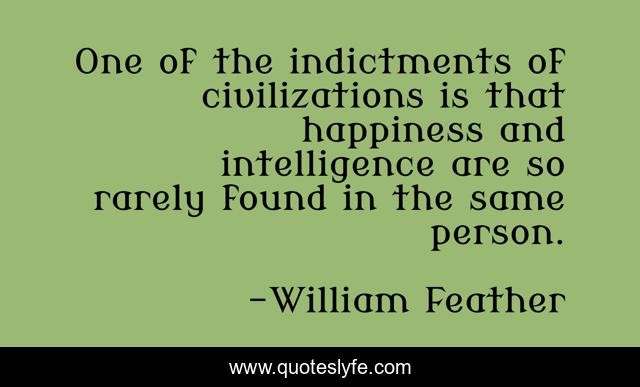 This page presents the quote "One of the indictments of civilizations is that happiness and intelligence are so rarely found in the same person.". Author of this quote is William Feather. This quote is about intelligence, same, person,.