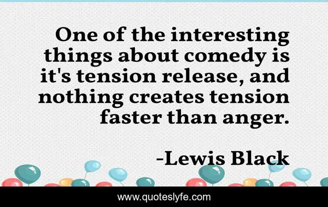 This page presents the quote "One of the interesting things about comedy is it's tension release, and nothing creates tension faster than anger.". Author of this quote is Lewis Black. This quote is about nothing, interesting, comedy,.