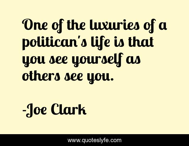 This page presents the quote "One of the luxuries of a politican's life is that you see yourself as others see you.". Author of this quote is Joe Clark. .