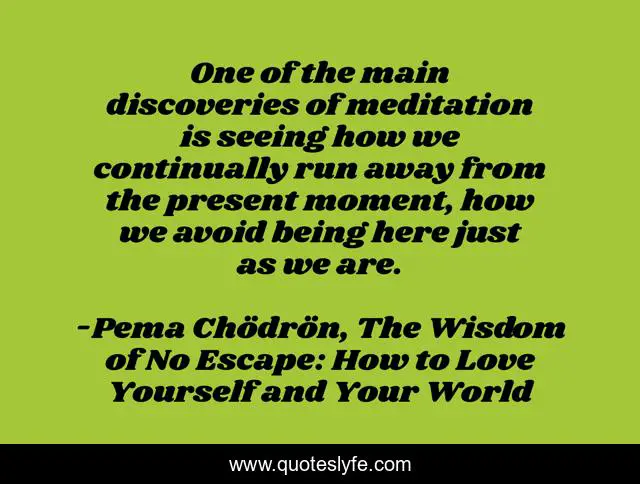 "Pema Chödrön, The Wisdom of No Escape: How to Love Yourself and Your World Quotes." Quoteslyfe.com, 2025. Sat. 06 Dec. 2025. <https://www.quoteslyfe.com/quote/One-of-the-main-discoveries-of-meditation-118018>.