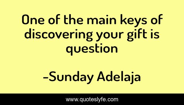 This page presents the quote "One of the main keys of discovering your gift is question". Author of this quote is Sunday Adelaja. This quote is about gift, people, work, question, calling, purpose, identity, discovery,.