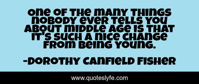 This page presents the quote "One of the many things nobody ever tells you about middle age is that it's such a nice change from being young.". Author of this quote is Dorothy Canfield Fisher. .