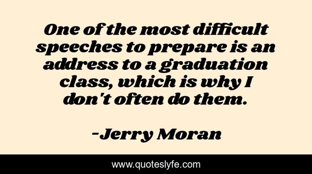 This page presents the quote "One of the most difficult speeches to prepare is an address to a graduation class, which is why I don't often do them.". Author of this quote is Jerry Moran. This quote is about why, prepare, difficult,.