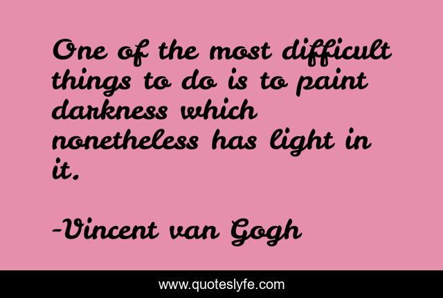This page presents the quote "One of the most difficult things to do is to paint darkness which nonetheless has light in it.". Author of this quote is Vincent van Gogh. This quote is about art, artist,.