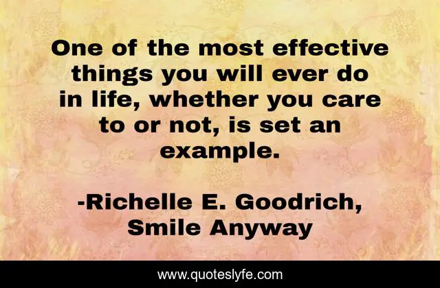 This page presents the quote "One of the most effective things you will ever do in life, whether you care to or not, is set an example.". Author of this quote is Richelle E. Goodrich, Smile Anyway. This quote is about life, richelle, effect, exemplar, representative, richelle-goodrich, model, example,.