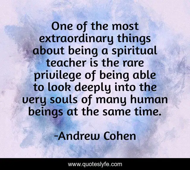 This page presents the quote "One of the most extraordinary things about being a spiritual teacher is the rare privilege of being able to look deeply into the very souls of many human beings at the same time.". Author of this quote is Andrew Cohen. This quote is about spiritual, look, time,.