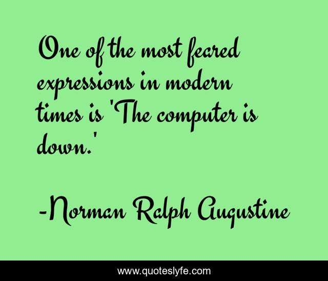 This page presents the quote "One of the most feared expressions in modern times is 'The computer is down.'". Author of this quote is Norman Ralph Augustine. This quote is about down, computer, modern,.
