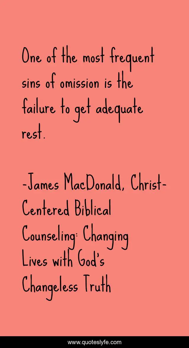 This page presents the quote "One of the most frequent sins of omission is the failure to get adequate rest.". Author of this quote is James MacDonald, Christ-Centered Biblical Counseling: Changing Lives with God's Changeless Truth. This quote is about peace-of-mind, sleep, leisure, hobbies,.