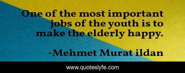 This page presents the quote "One of the most important jobs of the youth is to make the elderly happy.". Author of this quote is Mehmet Murat ildan. .