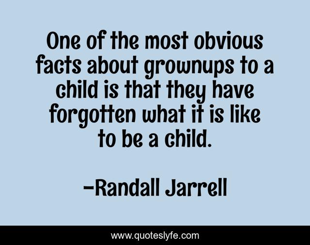 This page presents the quote "One of the most obvious facts about grownups to a child is that they have forgotten what it is like to be a child.". Author of this quote is Randall Jarrell. .