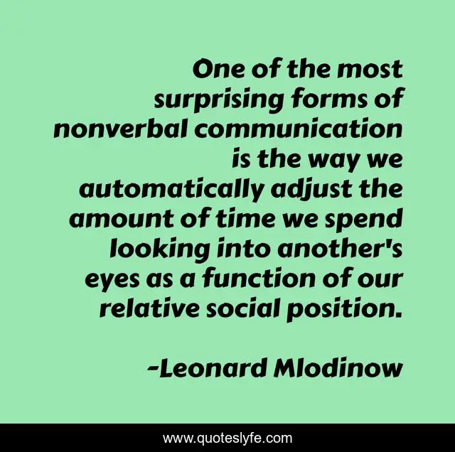 This page presents the quote "One of the most surprising forms of nonverbal communication is the way we automatically adjust the amount of time we spend looking into another's eyes as a function of our relative social position.". Author of this quote is Leonard Mlodinow. This quote is about looking, eyes, time,.