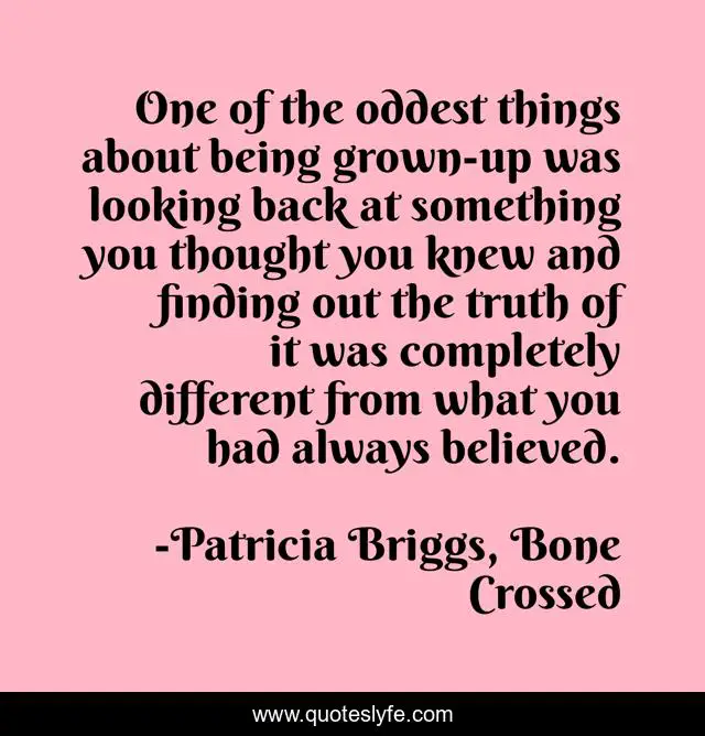 This page presents the quote "One of the oddest things about being grown-up was looking back at something you thought you knew and finding out the truth of it was completely different from what you had always believed.". Author of this quote is Patricia Briggs, Bone Crossed. .