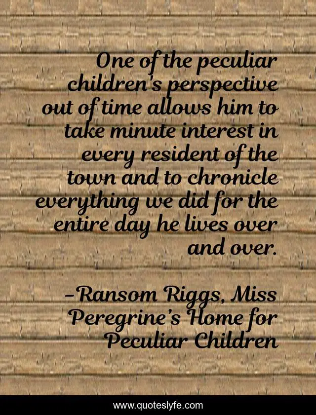 "Ransom Riggs, Miss Peregrine’s Home for Peculiar Children Quotes." Quoteslyfe.com, 2025. Fri. 05 Dec. 2025. <https://www.quoteslyfe.com/quote/One-of-the-peculiar-children-s-perspective-218248>.