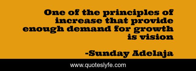 This page presents the quote "One of the principles of increase that provide enough demand for growth is vision". Author of this quote is Sunday Adelaja. This quote is about provide, principles, increase, enough, growth, demand, one-of, vision,.