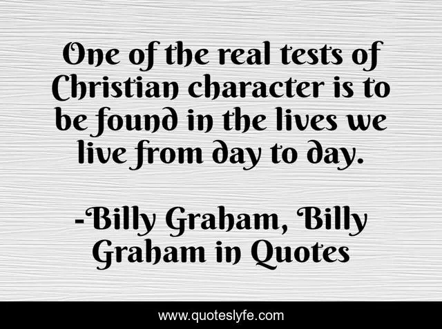 This page presents the quote "One of the real tests of Christian character is to be found in the lives we live from day to day.". Author of this quote is Billy Graham, Billy Graham in Quotes. This quote is about character, billy-graham,.