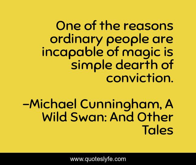 This page presents the quote "One of the reasons ordinary people are incapable of magic is simple dearth of conviction.". Author of this quote is Michael Cunningham, A Wild Swan: And Other Tales. .