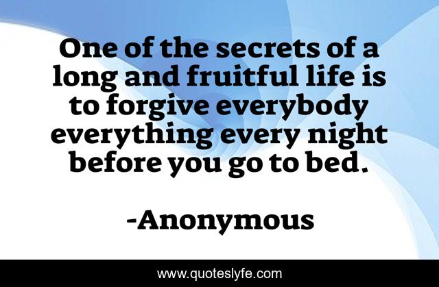 This page presents the quote "One of the secrets of a long and fruitful life is to forgive everybody everything every night before you go to bed.". Author of this quote is Anonymous. .
