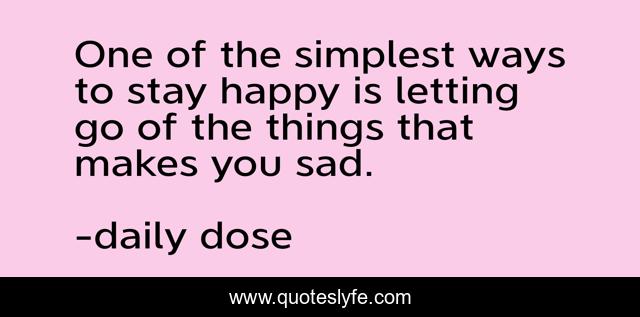 This page presents the quote "One of the simplest ways to stay happy is letting go of the things that makes you sad.". Author of this quote is daily dose. This quote is about letting-go, enthusiasm, true, inspirational, happy,.