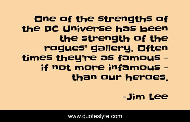 This page presents the quote "One of the strengths of the DC Universe has been the strength of the rogues' gallery. Often times they're as famous - if not more infamous - than our heroes.". Author of this quote is Jim Lee. This quote is about universe, heroes, strength,.