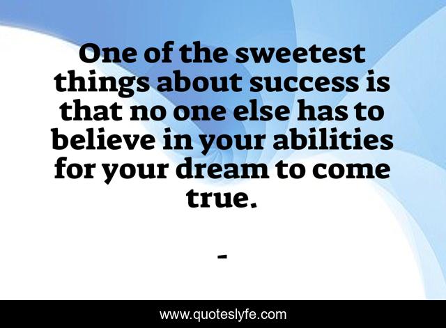 This page presents the quote "One of the sweetest things about success is that no one else has to believe in your abilities for your dream to come true.". Author of this quote is . This quote is about success, edmond-mbiaka, believe-in-your-abilities, dream-come-true, your-abilities, your-dream,.