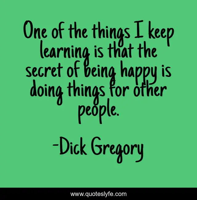 This page presents the quote "One of the things I keep learning is that the secret of being happy is doing things for other people.". Author of this quote is Dick Gregory. .