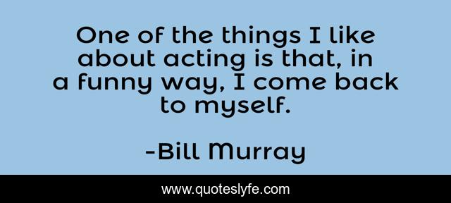 This page presents the quote "One of the things I like about acting is that, in a funny way, I come back to myself.". Author of this quote is Bill Murray. This quote is about myself, acting, way,.