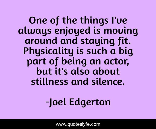 This page presents the quote "One of the things I've always enjoyed is moving around and staying fit. Physicality is such a big part of being an actor, but it's also about stillness and silence.". Author of this quote is Joel Edgerton. This quote is about moving, silence, actor,.
