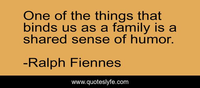 This page presents the quote "One of the things that binds us as a family is a shared sense of humor.". Author of this quote is Ralph Fiennes. This quote is about sense of humor, family,.
