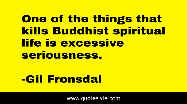 This page presents the quote "One of the things that kills Buddhist spiritual life is excessive seriousness.". Author of this quote is Gil Fronsdal. This quote is about spirituality, buddhism,.