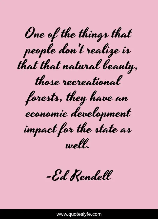 This page presents the quote "One of the things that people don't realize is that that natural beauty, those recreational forests, they have an economic development impact for the state as well.". Author of this quote is Ed Rendell. This quote is about impact, people,.